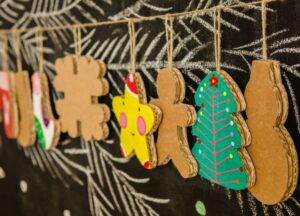 Le ghirlande sono un classico intramontabile delle decorazioni natalizie. Per realizzare una ghirlanda di cartone, puoi ritagliare forme natalizie come alberi, stelle o fiocchi di neve dal cartone e dipingerle con colori vivaci.